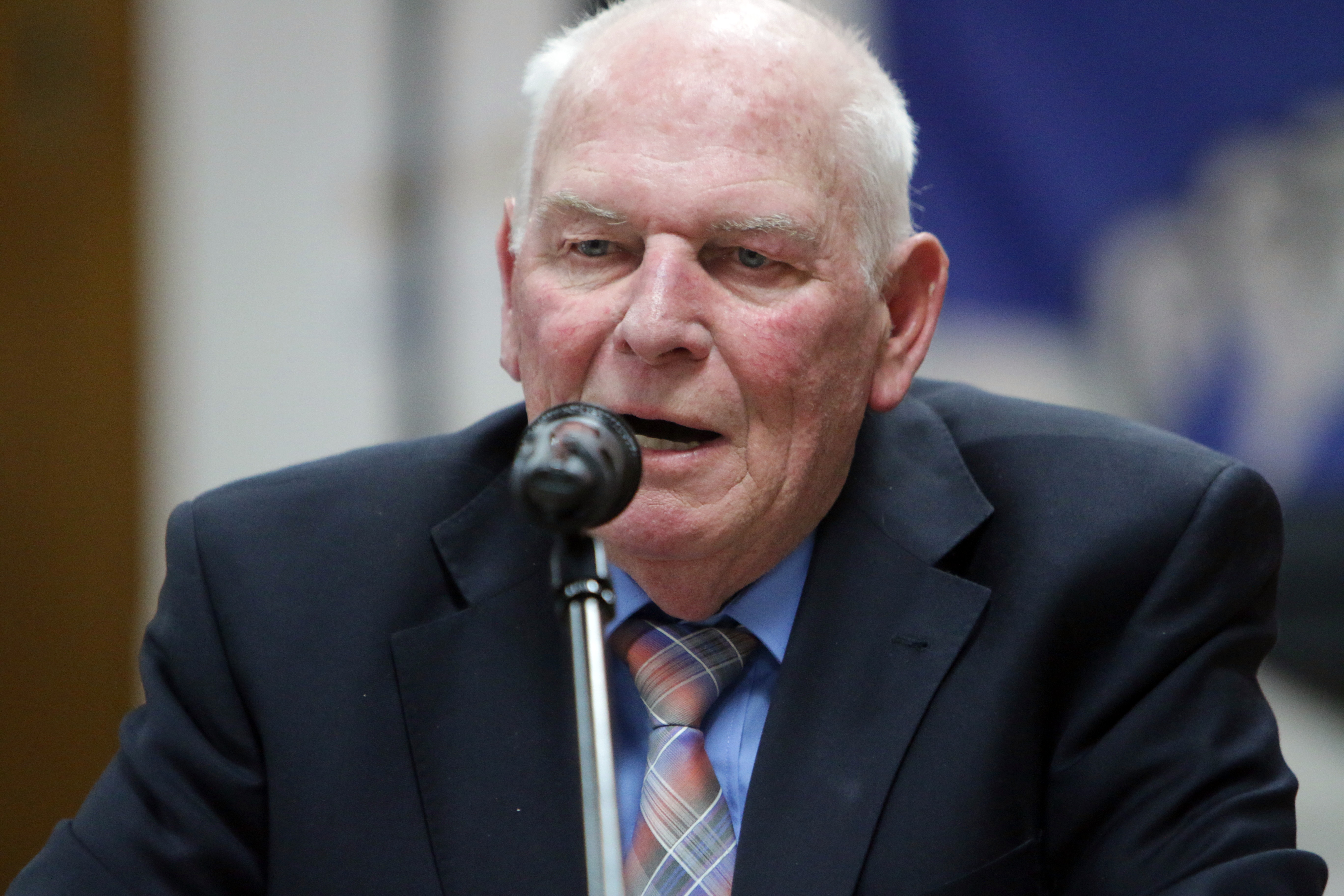 Bürgermeister Dr. Holger Habich bei seiner Begrüßungsrede und der Übergabe eines Geschenk an den Verein. |