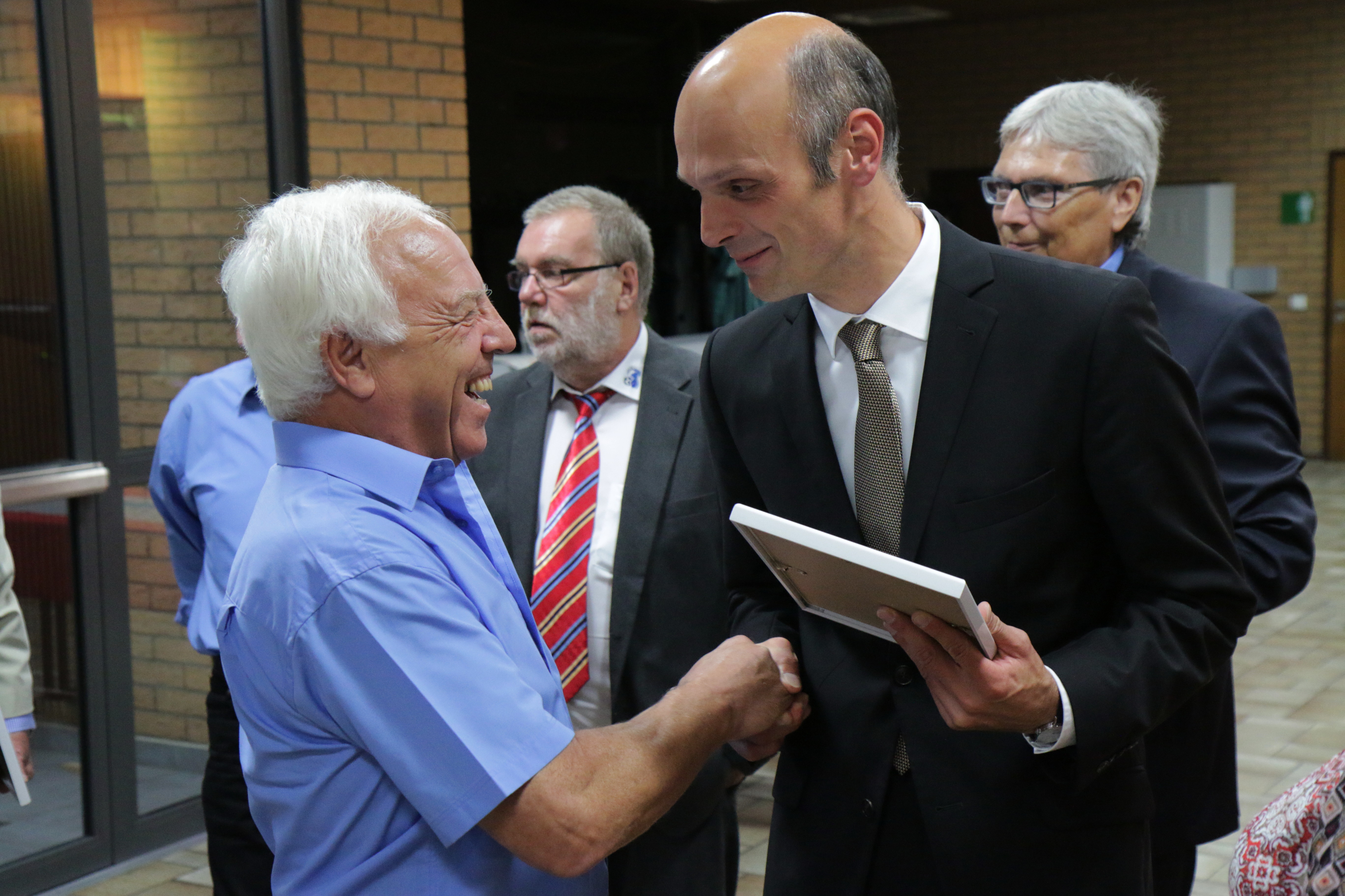 Der 2.Vorsitzende Hans-Joachim Zubrod übergibt ein Geschenk von den Mitgliedern und dem Vorstand an den 1.Vorsitzenden Alfred (Jimmi) Ulrich für sein langjähriges Engagement. Alfred Ulrich ist Gründungsmitglied und seit 40-Jahren im geschäftsführenden Vorstand, davon seit |
